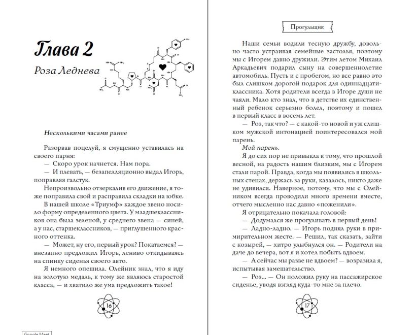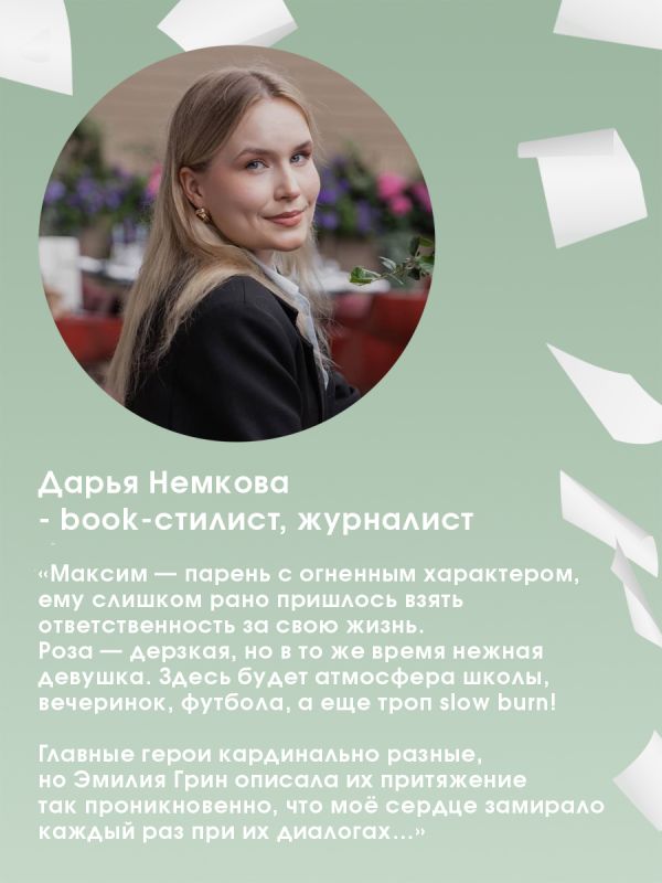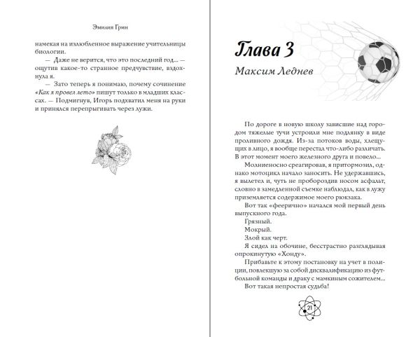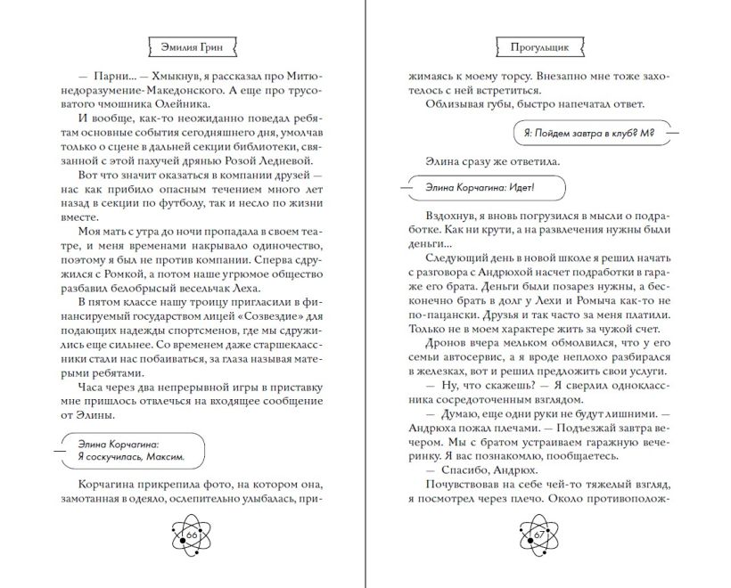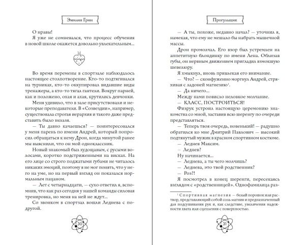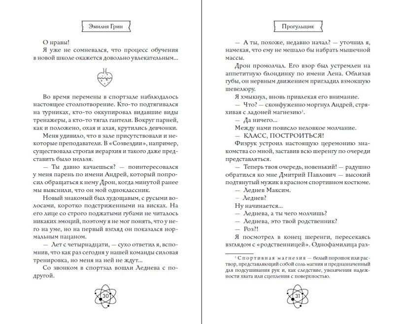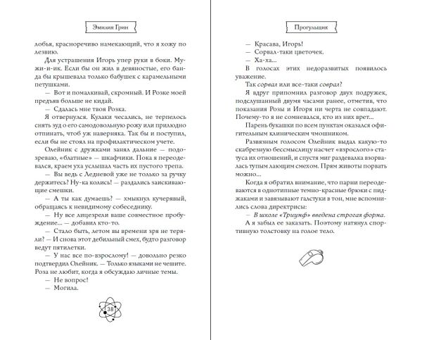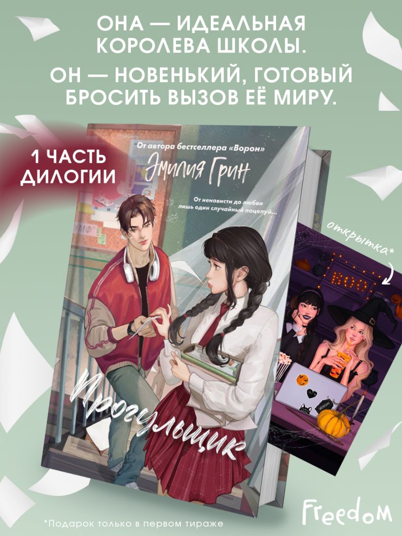 Новинка популярного автора сентиментальной прозы — Эмилии Грин. Ее книги выпущены тиражом свыше 100 тысяч экземпляров. «Прогульщик» — первая часть дилогии «Шипы первой любви», которая расскажет историю Розы и Максима. Роман моментально обрел популярность на портале Литнет, набрав более 2,1 миллиона прочтений, и вошел в топ «Подростковой прозы». Внутри атмосферная верстка, две сюжетных черно-белых иллюстрации, и только в первом тираже в подарок открытка!