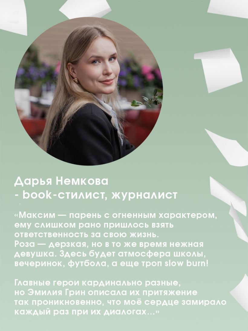 Это история о первой школьной влюблённости, дружбе и ревности, взрослении и предательстве. Понравится поклонникам «Ворона» Эмилии Грин, «Пепла» Ники Сью, а также романа «Твое сердце будет разбито» и «По осколкам твоего сердца» Анны Джейн.