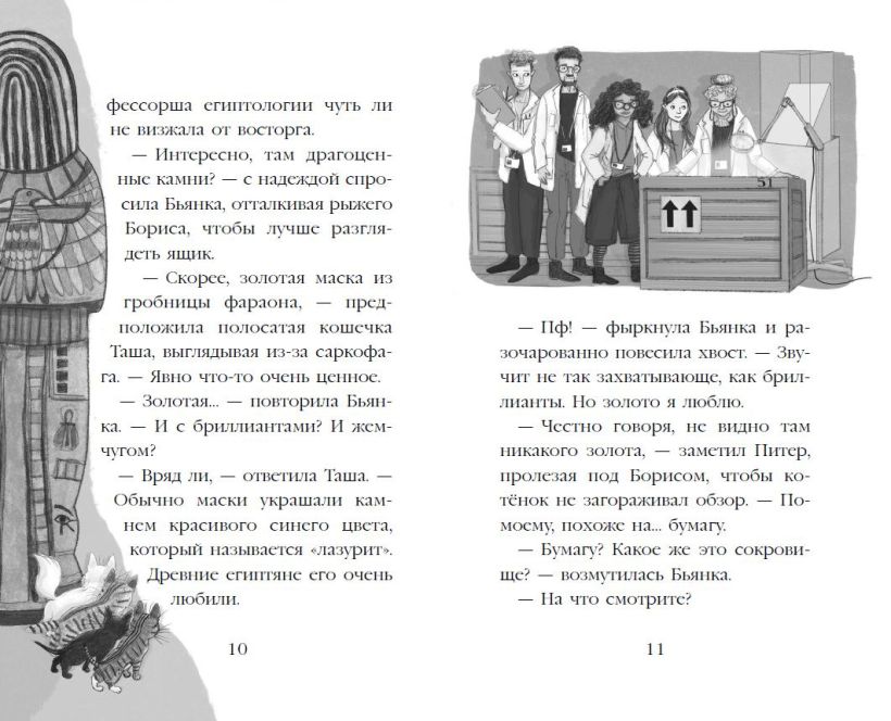 Люди говорят о каком-то проклятии папируса, но на этом папирусе нарисованы... кошки! Значит, проклятие тоже кошачье? Котенок Таша намерена разобраться — это действительно древняя магия или крысиные козни? Ведь Таша — настоящая музейная кошка, пусть еще маленькая, но она всегда готова защитить друзей и музейные экспонаты!