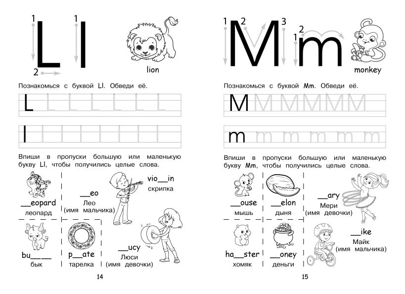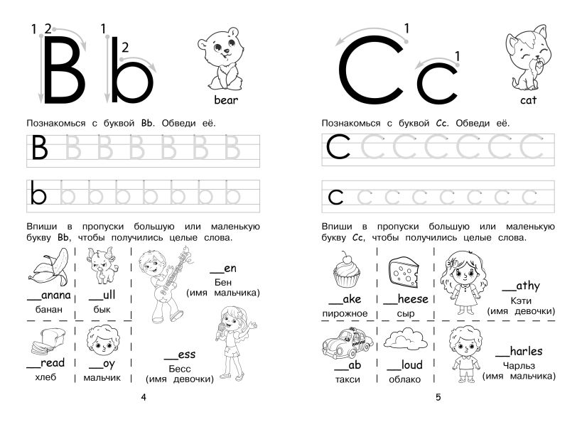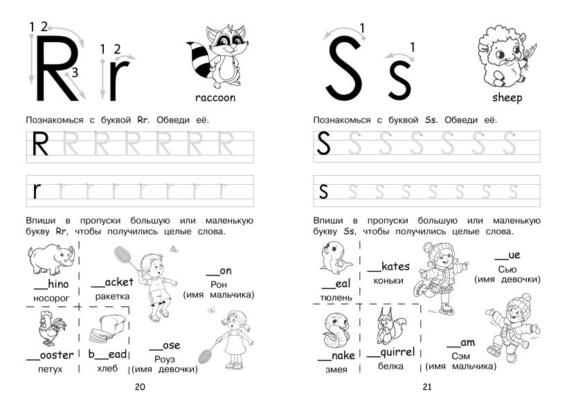 Пособие поможет детям не только освоить правильное написание печатных и письменных английских букв, но и запомнить их и уверенно различать при любом написании. Выполняя разнообразные упражнения, они не только будут красиво писать, но и запомнят 180 английских слов и получат первые уроки правильного произношения. Дети знакомятся с буквами в алфавитном порядке, а в заданиях на прописывание слов используются только те буквы, которые они уже запомнили и написали! Чтобы свободно общаться на английском языке, нужно сделать первый шаг — научиться писать и читать. Сделайте его!