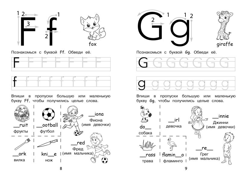 Для успехов в английском языке ребенку важно освоить английские буквы — научиться их узнавать, различать, писать. С этим пособием он легко решит эту задачу! Огромный плюс прописей — наличие в них и больших, и маленьких букв. Стрелочки-подсказки помогут и ребенку, и взрослому понять, как правильно написать букву, а новые знания можно будет тут же применить на практике. Современные дети не любят однообразных заданий, поэтому, помимо строчек для прописывания, в пособие включены упражнения на использование букв в словах. Это позволяет детям переключаться между заданиями, не теряя концентрации, и дает возможность легко выучить 111 новых слов.