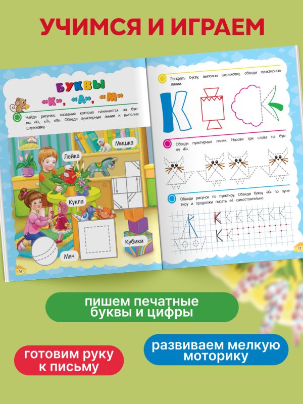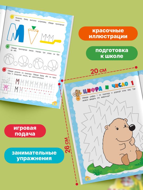 Выполняя увлекательные задания, дошкольник сможет развить мелкую моторику, научится писать печатные буквы и цифры быстро и аккуратно. Занимательные упражнения помогут ребенку освоить базовые навыки с легкостью и радостью, что положительно повлияет на будущее обучение. А красочные иллюстрации будут способствовать развитию воображения, речи, тренировке навыков счета. Кроме того, ребенок сможет увеличить словарный запас, расширить кругозор, качественно подготовиться к школе.