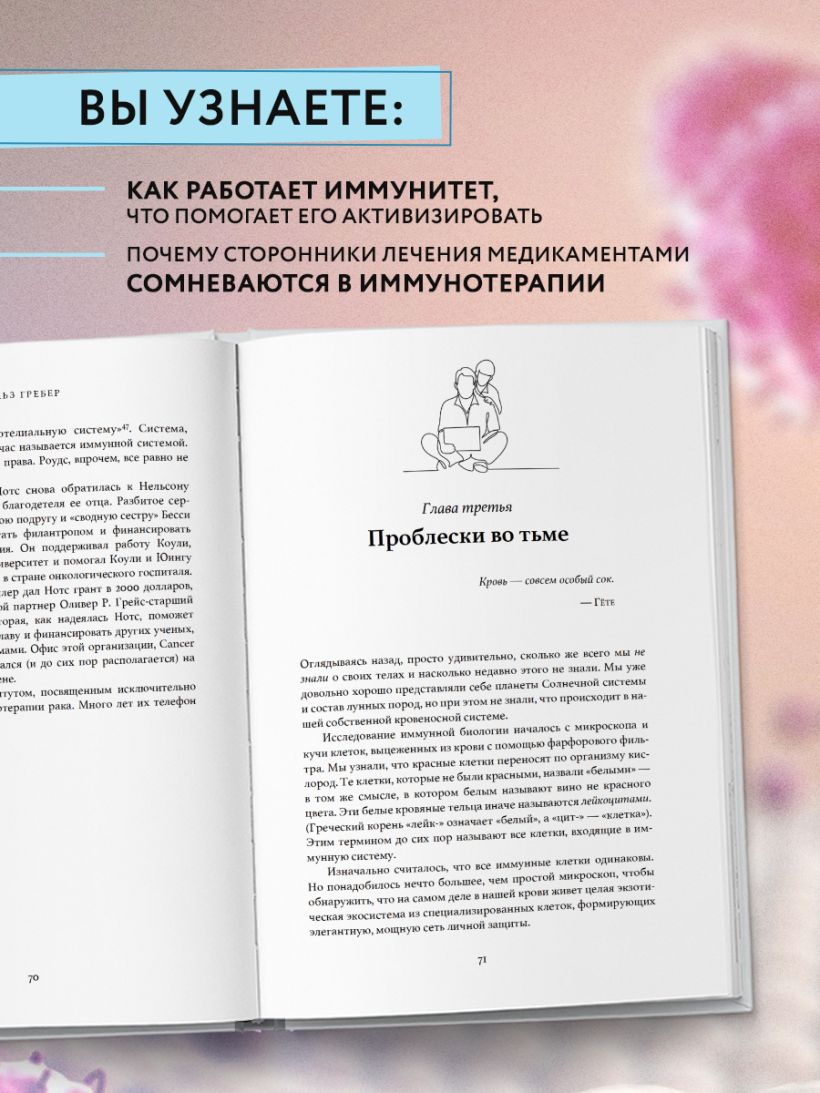 Иммунотерапия — одно из самых новых, перспективных направлений, улучшающих качество жизни больных с серьезными заболеваниями. Почему же адепты медикаментозной терапии подвергают сомнениям ее эффективность, несмотря на явные успехи? действительно, неужели организм может исцелить себя сам от рака, деменции или рассеянного склероза? А если может, то почему не делает? Эта книга отправит вас в увлекательное путешествие по миру медицинских открытий. Вместе с пациентами и учеными-первопроходцами вы узнаете, как работает наш иммунитет, что поможет его активизировать и почему так страшна гиперактивная иммунная система. Настоящие детективные истории с примесью триллера и иногда, научной фантастики — так можно оценить путь врачей, которые на протяжении своей жизни пытались расшифровать загадки, поставленные перед людьми таким знакомым и таким невероятно сложным человеческим организмом. В основу книги положены открытия, за которые была присуждена Нобелевская премия по физиологии и медицине в 2018 году.