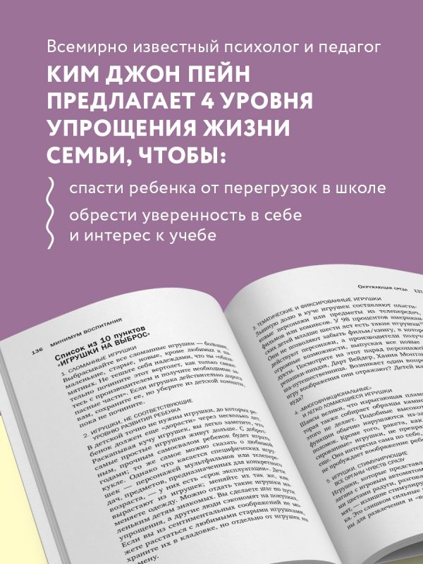 В современном мире дети слишком перегружены уроками, тренировками и внешкольными занятиями. Это приводит к постоянной усталости, проблемам с учебой и перепадам настроения. Детям не хватает времени на игры, общение со сверстниками и исследование окружающего мира. В своей книге знаменитый психолог и педагог Ким Джон Пейн предлагает эффективную концепцию упрощения и гармонизации жизни ребенка, которая избавит его от перегрузок и стресса, вдохнет в него уверенность в себе и тягу к знаниям.