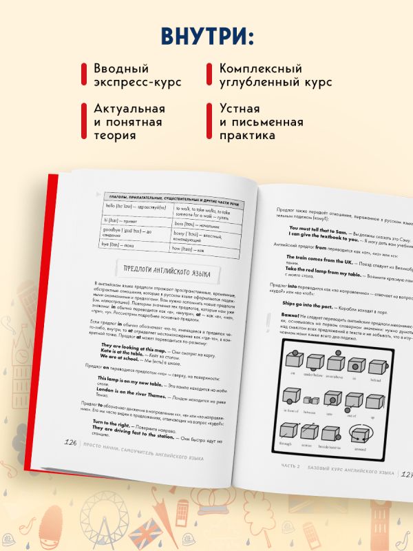 Самоучитель английского языка состоит из ознакомительного экспресс-курса, благодаря которому вы освоите всю базу, начиная с алфавита и произношения звуков, и комплексного разговорно-лексико-грамматического курса, направленного на практику.