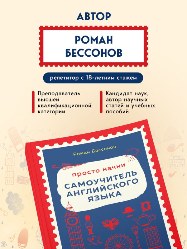 Английский с нуля вместе с опытным преподавателем с высшей квалификационной категорией! Роман Бессонов обучает английскому подростков и взрослых, опираясь на всемирно признанную Кембриджскую коммуникативную методику, которую также заложил в основы самоучителя. Выполнение устных и письменных упражнений и работа со словарем помогут закрепить пройденный материал и начать практиковать язык с самого первого урока!