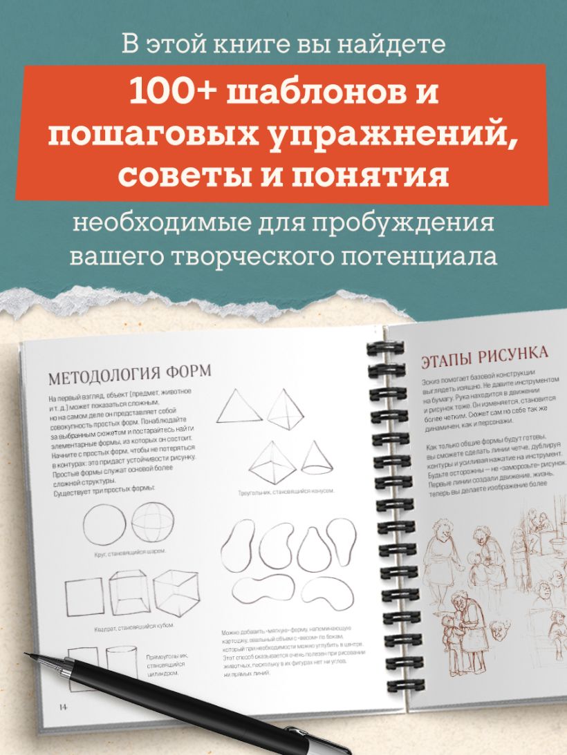 В этой книге вы найдете 100+ шаблонов и пошаговых упражнений, советы и понятия, необходимые для пробуждения вашего творческого потенциала.
