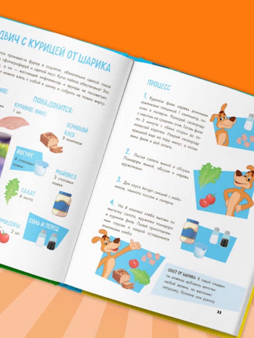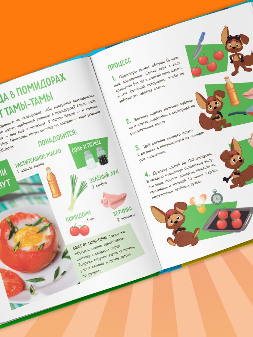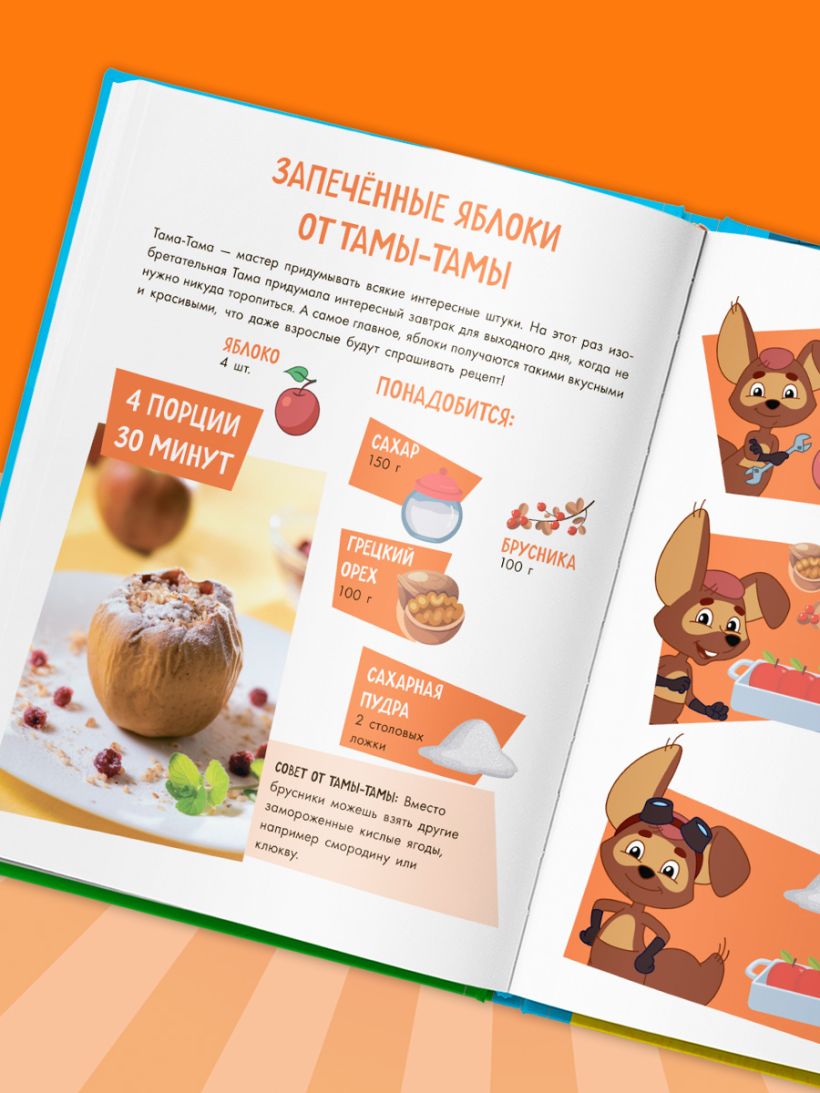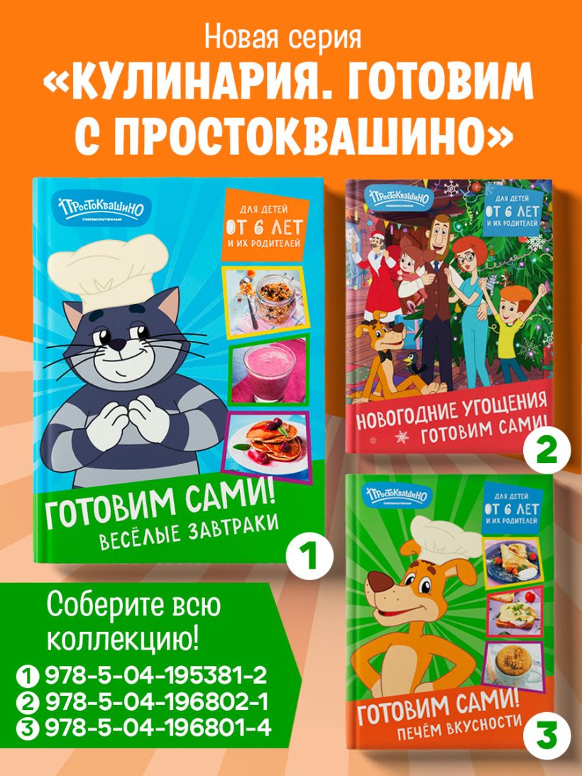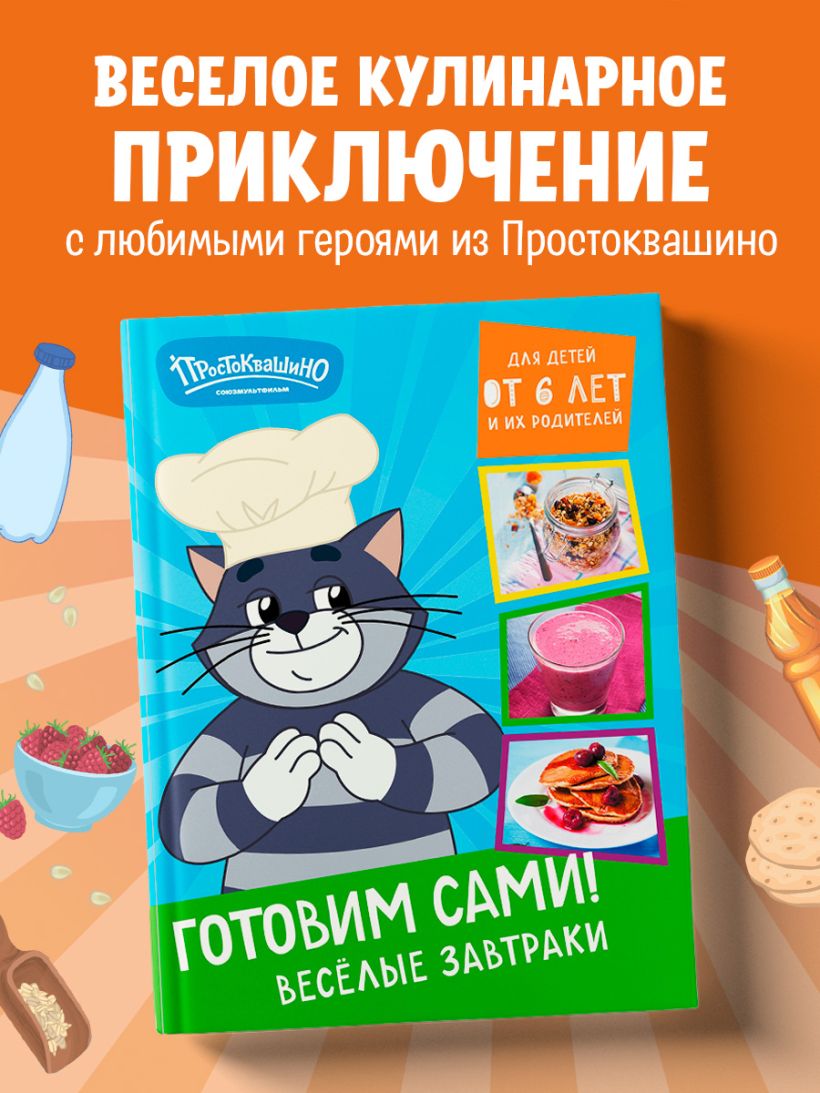 Вместе с любимыми героями мультсериала «Простоквашино» ребята научатся готовить яркие вкусные завтраки: от самых простых, вроде «ленивой» ночной овсянки, до необычных, например печеных яблок с орехами. От старших понадобится только пару раз помочь, чтобы ребенок подружился с духовкой.