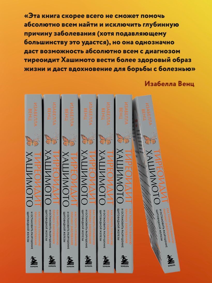 Что на самом деле происходит с больным при развитии заболевания, известного как Хашимото? Болезнь Хашимото — это нечто большее, чем просто гипотиреоз. У значительной части пациентов будут наблюдаться кислотный рефлюкс, дефицит питательных веществ, анемия, проницаемость кишечника, чувствительность к пище, заболевания десен и гипогликемия в дополнение к «типичным» симптомам гипотиреоза — увеличению веса, непереносимости холода, выпадению волос, усталости и запорам. Организм застревает в порочном круге перегрузки иммунной системы, недостаточности надпочечников, нарушения пищеварения, хронического воспаления и недостаточной выработки гормонов. Этот цикл — самоподдерживающийся и будет продолжать вызывать все больше и больше симптомов до тех пор, пока не вмешается внешний фактор и не разорвет порочный круг. Автор предлагает начать с простейших модификаций, удалив из своей жизни триггеры воспаления, а затем обозначает ряд шагов, позволяющих восстановить другие нарушенные системы, чтобы вернуть в организм равновесие и здоровье.