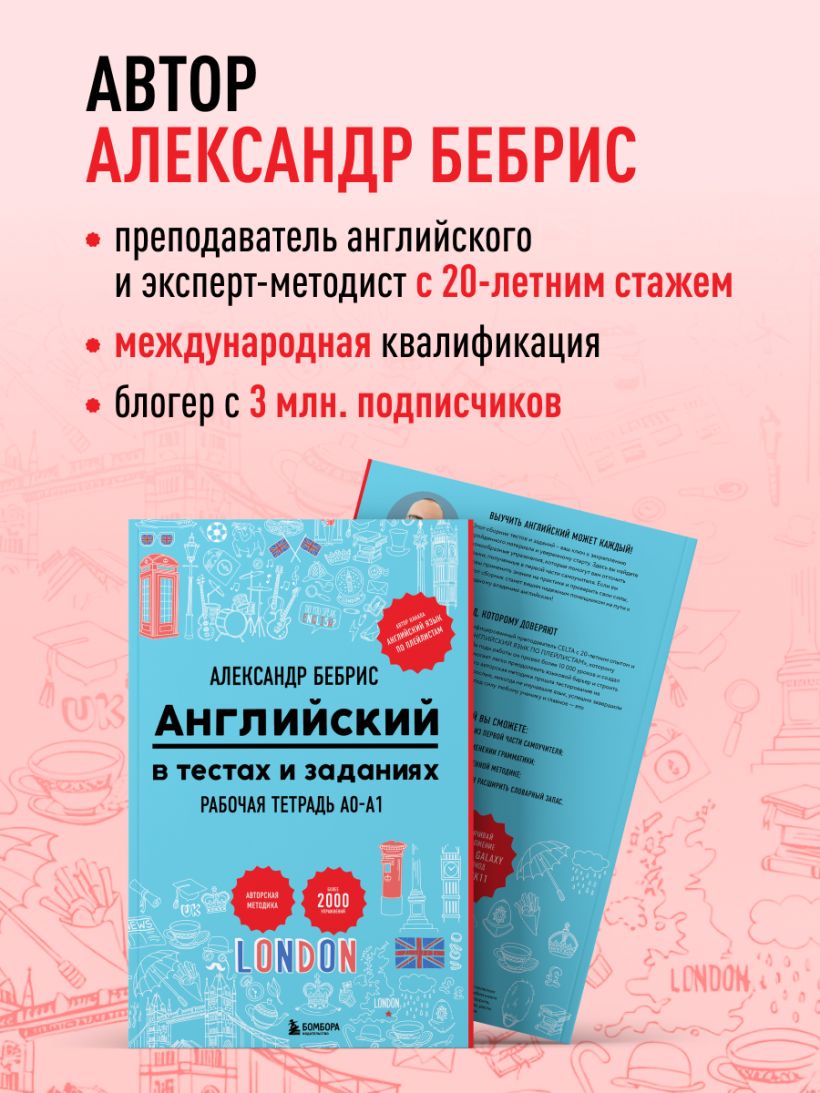 «Выучить английский может каждый!» Сколько раз вы начинали, но бросали? Запутывались в грамматике, забывали слова и думали: «Это слишком сложно!»? С этой книгой всё изменится! Автор — Александр Бебрис, сертифицированный преподаватель с квалификацией CELTA Кембриджского Университета и создатель популярного канала «АНГЛИЙСКИЙ ЯЗЫК ПО ПЛЕЙЛИСТАМ», которому доверяют 3 миллиона учеников. Его методика помогает не только изучать правила, но и сразу применять их на практике. Простой и понятный пошаговый подход, системные упражнения и формулы делают обучение лёгким и доступным для каждого. Методика успешно протестирована на фокус-группах разных возрастов и поможет вам быстро достичь результата, даже если у вас нет времени на занятия с репетитором. Не важно, с какого уровня вы начинаете. Главное — ваша цель. Включайте занятия в своё расписание, следуйте простым формулам, и результат не заставит себя ждать. Доверьтесь методике, которая уже помогла тысячам людей заговорить на английском!