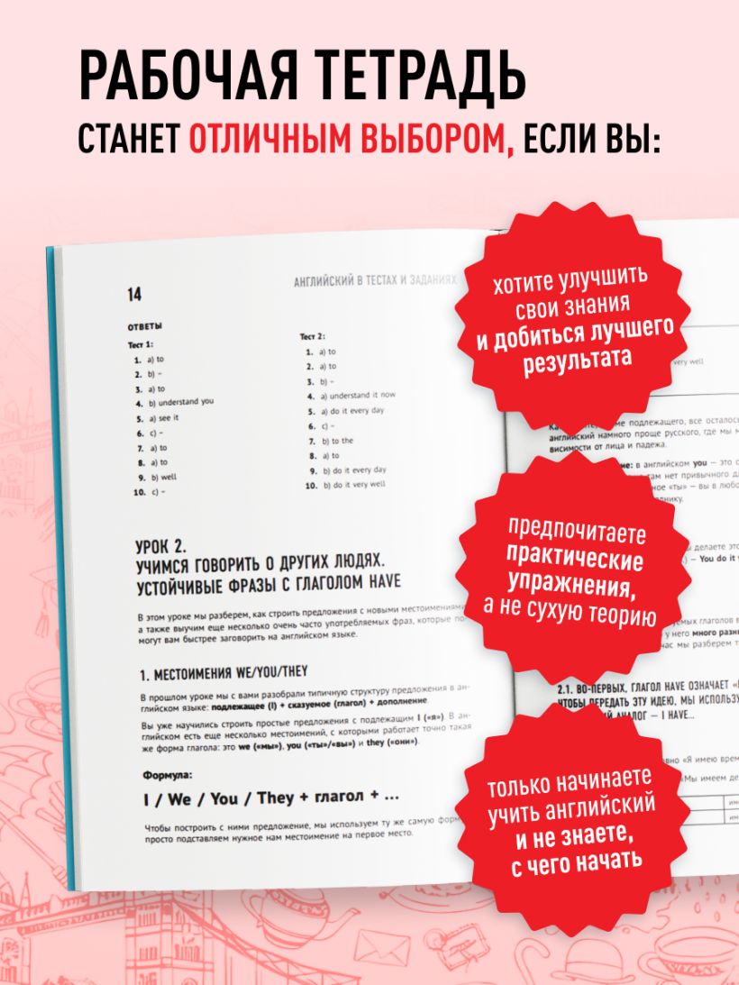 Этот сборник — практическое продолжение курса, которое помогает превратить знания в уверенные навыки. Вас ждут разнообразные тесты и задания, созданные для того, чтобы закрепить пройденный материал, натренировать грамматику и расширить словарный запас. Если вы хотите проверить свои силы и почувствовать реальный прогресс, эта книга станет надежным инструментом на пути к свободному английскому.