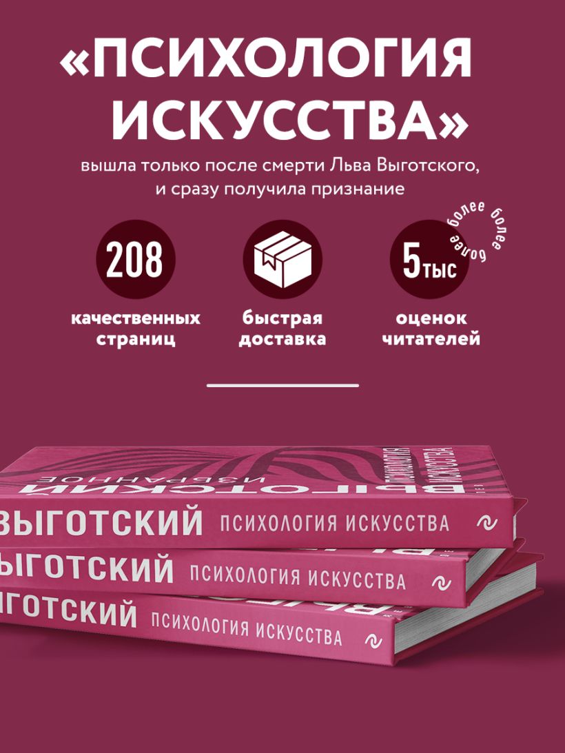 Фундаментальная работа Л. С. Выготского «Психология искусства» увидела свет после смерти автора и стала первой работой в мировой психологической науке, объясняющей отношения человека и искусства. В ней поднимаются вопросы природы искусства, связи искусства и психоанализа, рассказывается, как «читать» предметы искусства и понимать их. «Психология искусства» завоевала всеобщее признание специалистов и читающей публики и была переведена на многие языки мира.