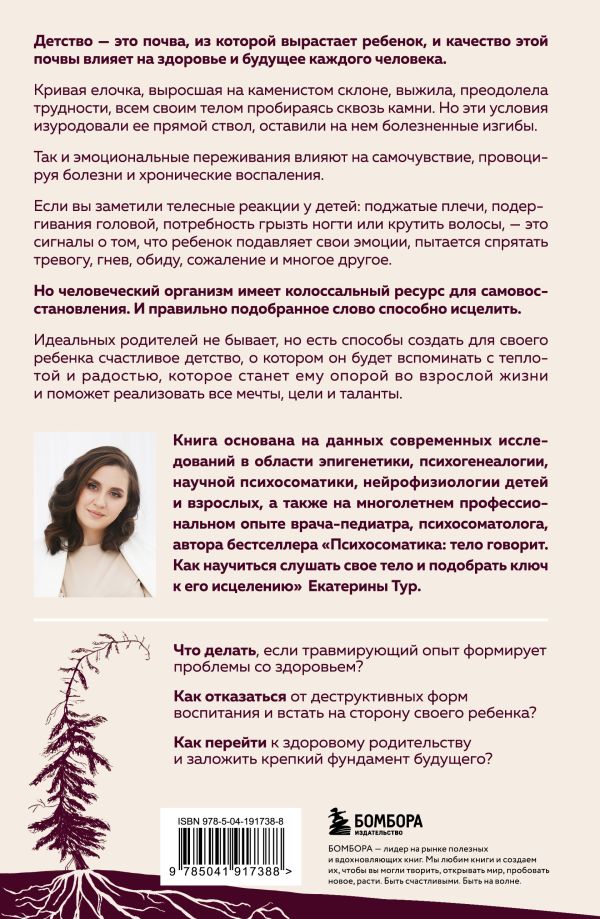 Книга основана на данных современных исследований в области эпигенетики, психогенеалогии, научной психосоматики, нейрофизиологии детей и взрослых, а также многолетнем профессиональном опыте ее автора, — врача-педиатра, психосоматолога Екатерины Тур.