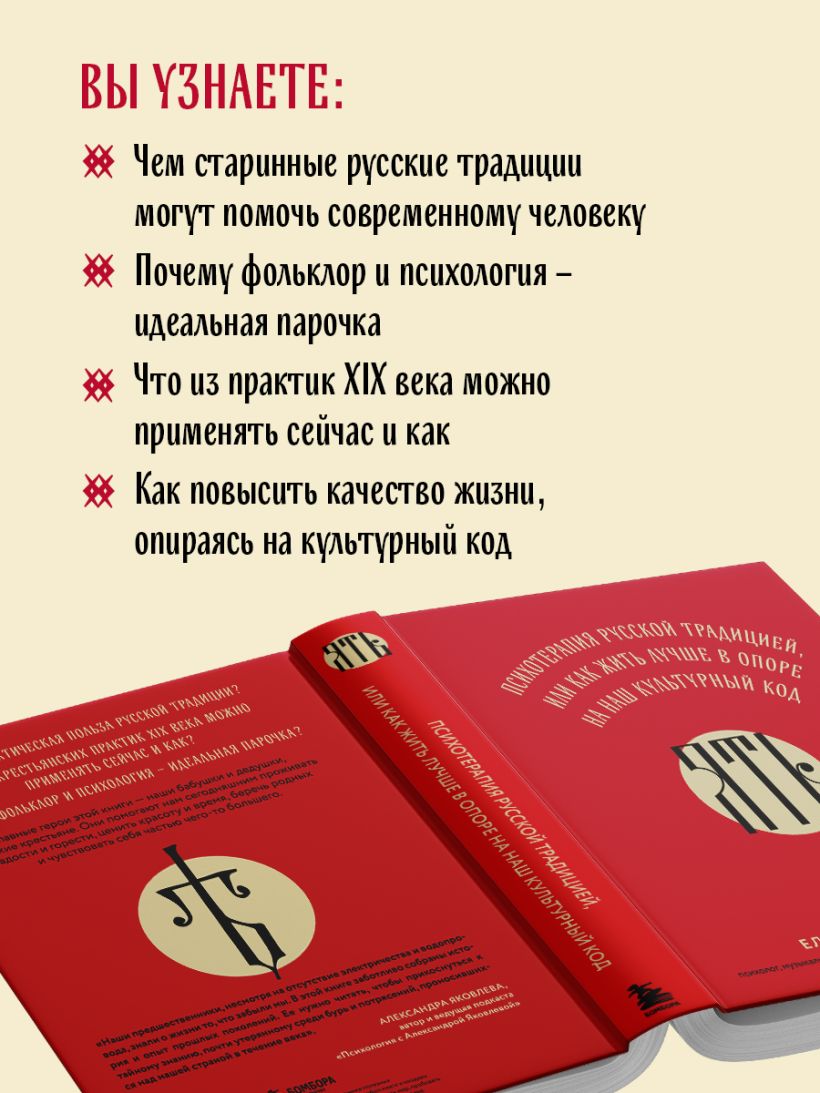 «Читая эту книгу, вы узнаете, сколько мудрости и силы было в том, что можно назвать "народная психология". Как люди справлялись с горем, как в этом помогали обряды, насколько мощно это наследие проросло в нас и где мы до сих пор встречаемся с памятью предков. Вас ждут удивительные открытия, которые, наполнят душу радостью и светом. А может быть, просто дадут ответы на ваши вопросы, позволят взглянуть на жизнь под другим углом». — Александра Яковлева, автор и ведущая подкаста «Психология с Александрой Яковлевой»