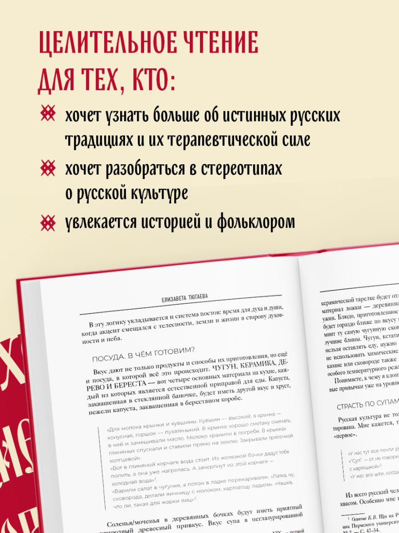 Елизавета Тюгаева превращает русскую традицию из калейдоскопа пестрых стереотипов о домострое, калинке-малинке и глупышках в кокошниках — в глубокую философскую систему и психотерапевтическую практику.