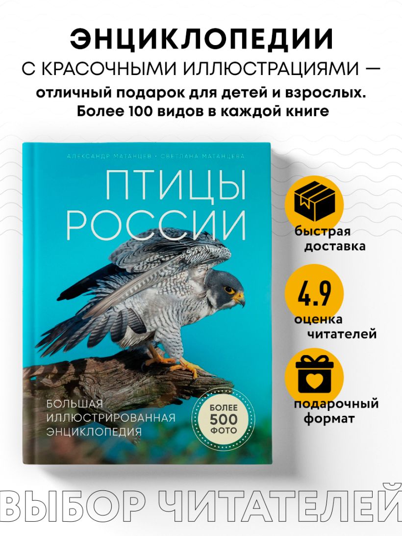 В этой энциклопедии вы найдете более 270 видов птиц, наиболее часто встречающихся в средней полосе России. Это незаменимый справочник по идентификации пернатых, обитающих в лесах, парках, прибрежных зонах и городской среде. В нем содержатся подробные сведения о жизни птиц в кратком и удобном для читателя формате.