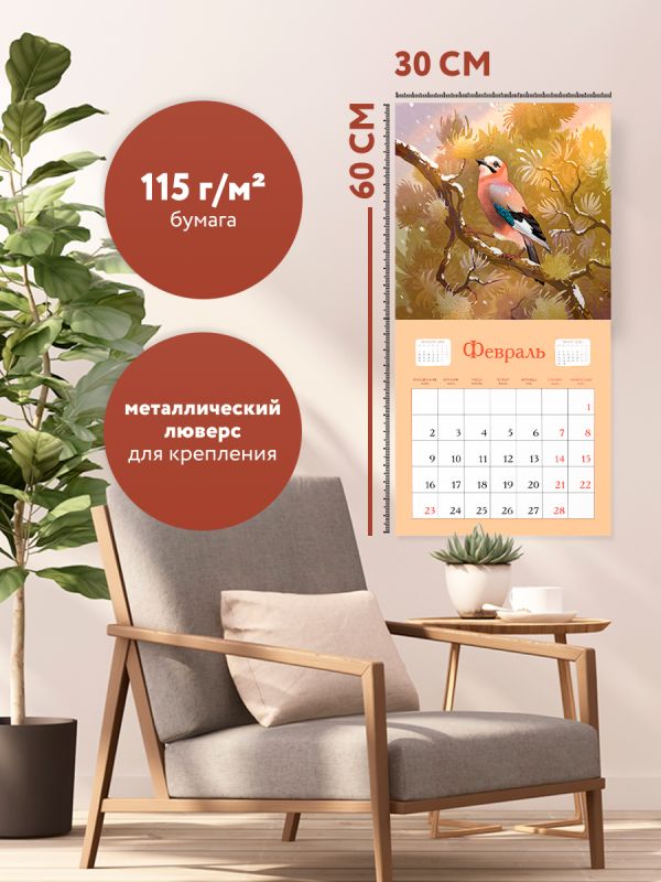 Календарь с 12 иллюстрациями птиц России на каждый месяц года.
