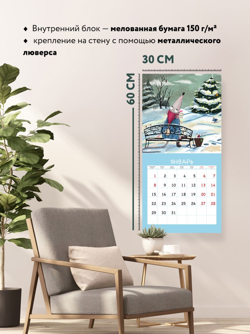 Наши настенные календари отличаются высоким качеством исполнения! Тщательно подобранные иллюстрации, напечатанные на глянцевой бумаге высочайшего качества, станут настоящим украшением дома, а в календарной сетке найдется место для ваших планов: большие клетки позволят делать записи и организовать свой год! В календаре также отмечены все государственные праздники.