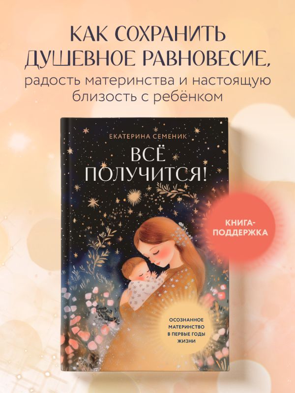 «Все получится! Осознанное материнство» — книга-поддержка для каждой мамы. Екатерина Семеник, многодетная мама и психолог, говорит с читательницей искренне и по-женски тепло. Без давления, без шаблонов и «правильных» сценариев. Только то, что работает — и проверено самой жизнью.