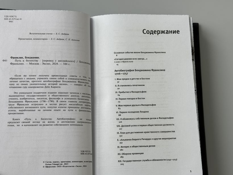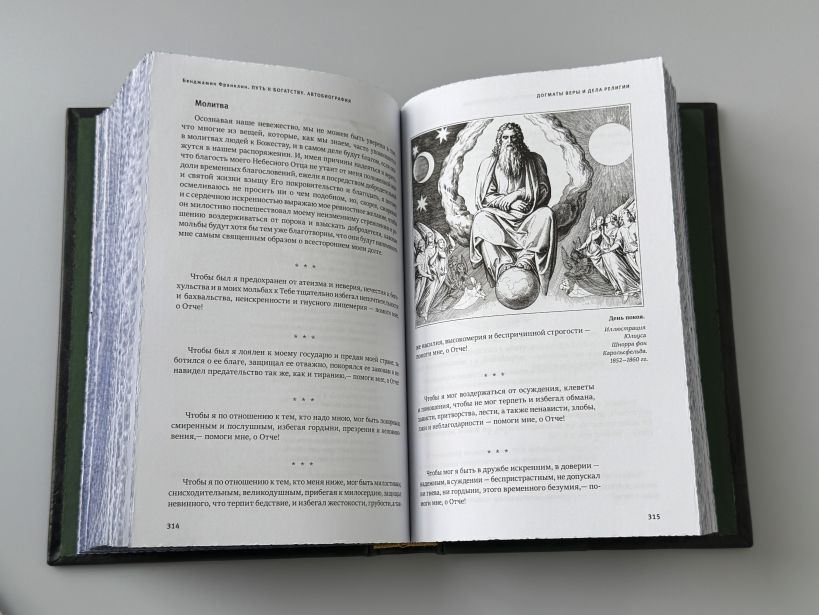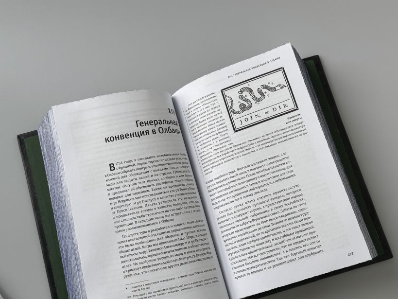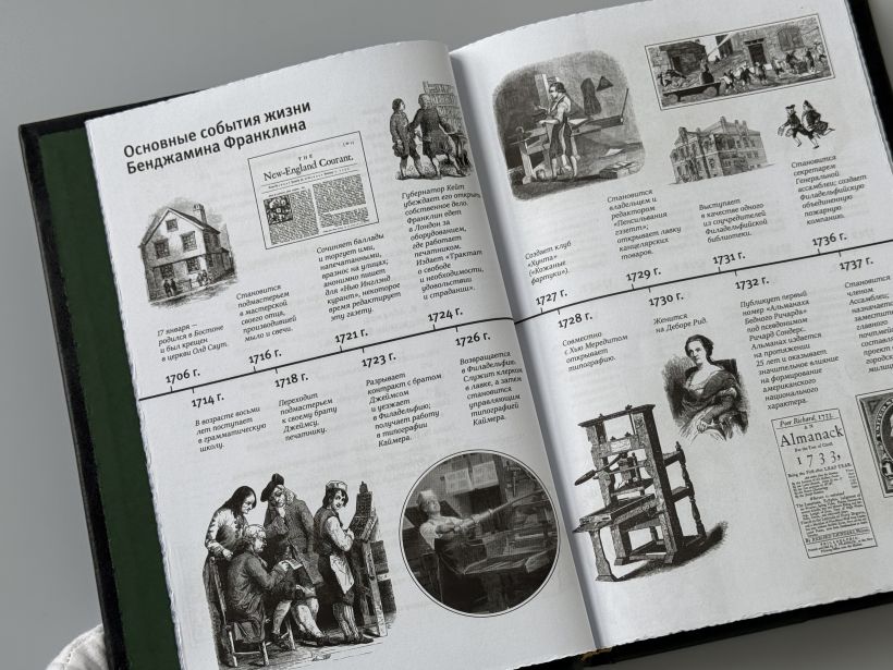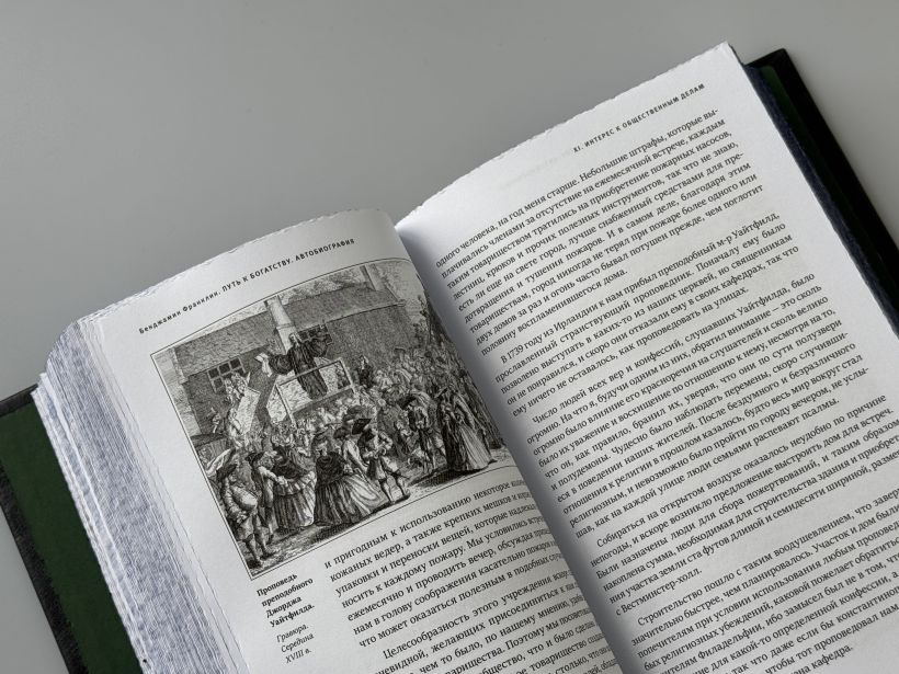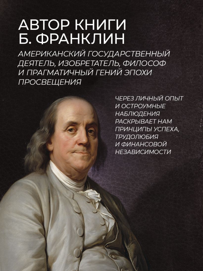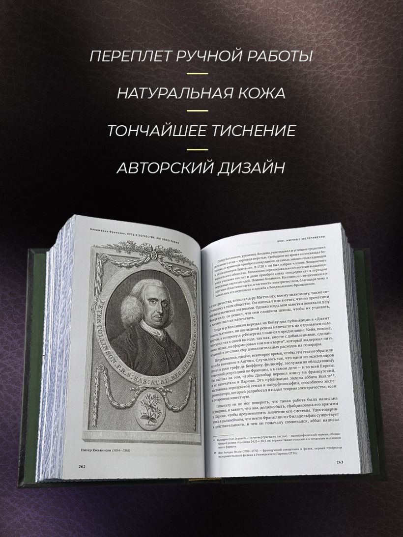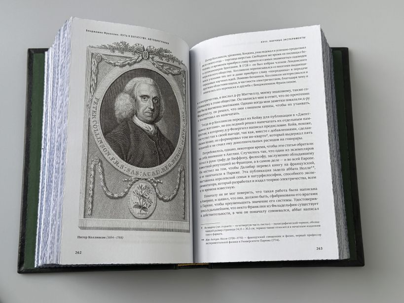 На передней сторонке переплета оттиснен гравированный портрет Бенджамина Франклина.