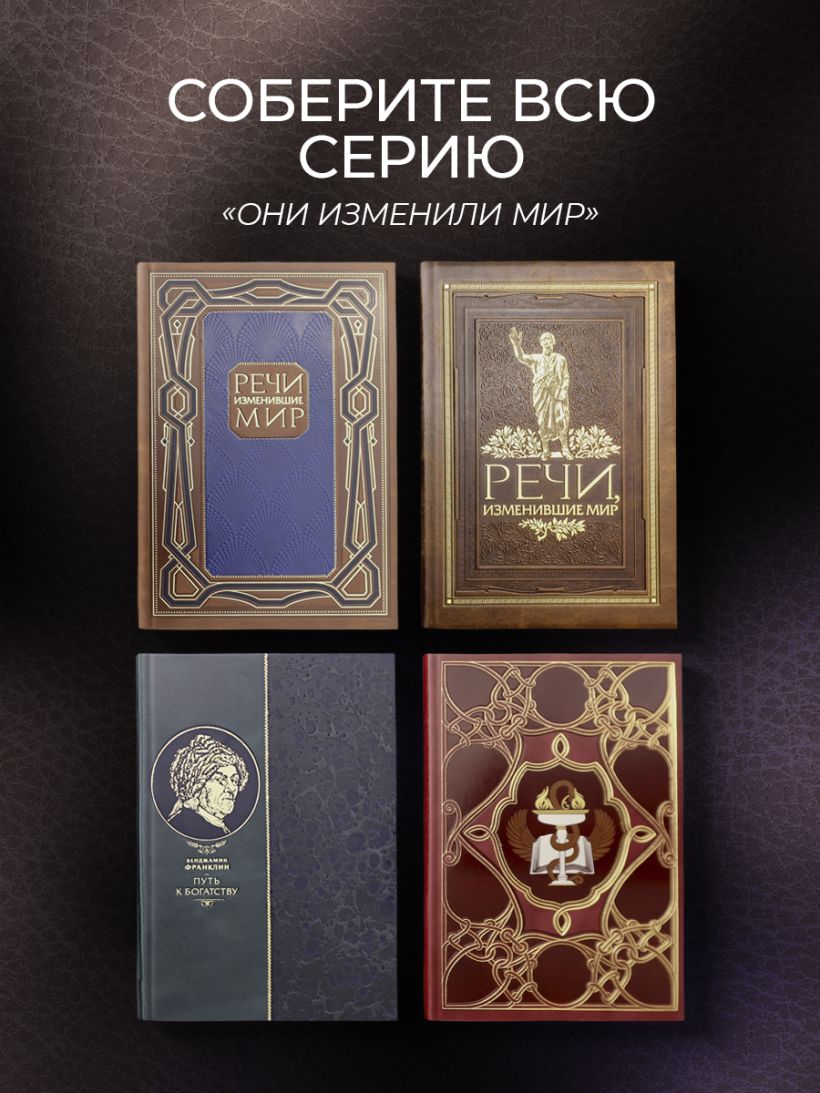 Электронная книга Аудиокнига Речи, изменившие мир. Книга в коллекционном инкрустированном кожаном переплете ручной работы с окрашенным, торшонированным и золочёным обрезом