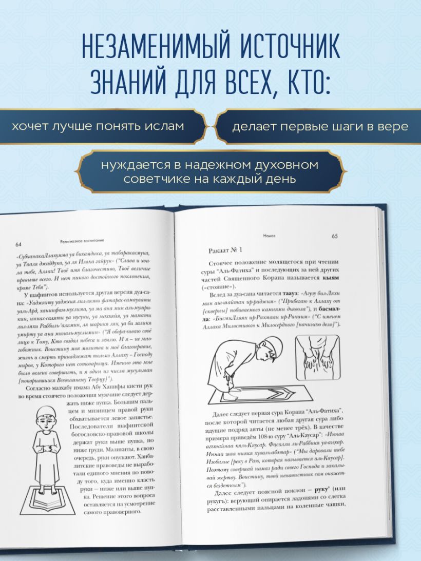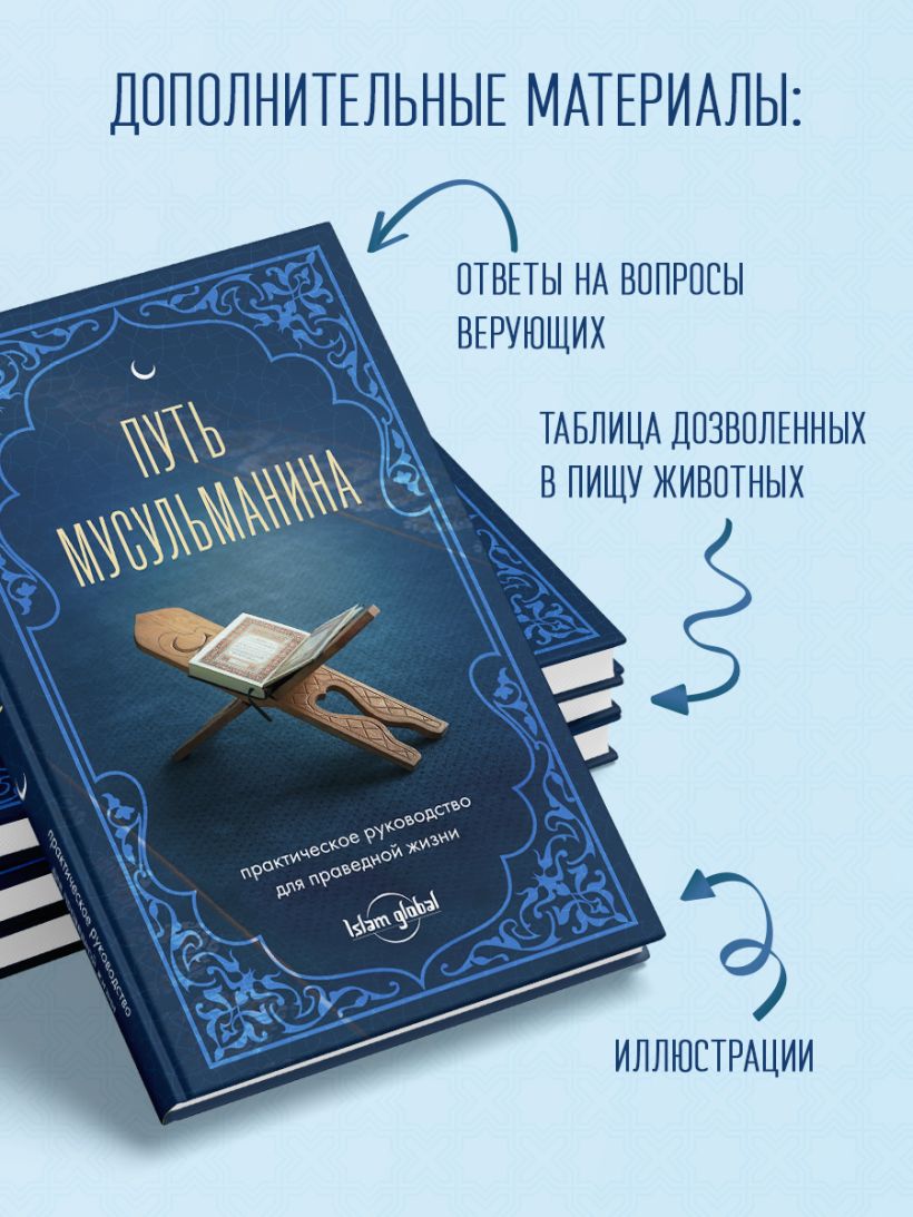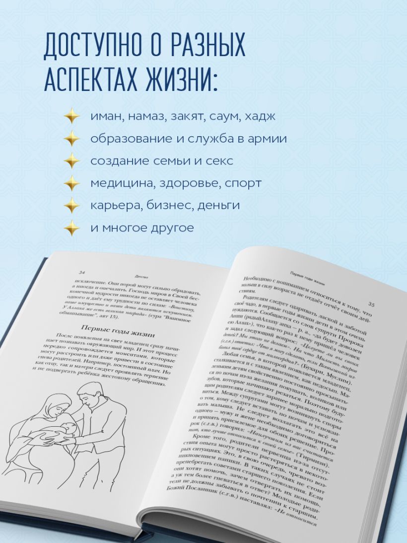 Практическое руководство для мусульман и всех, кто интересуется исламом. Книга затрагивает темы, начиная от принятия мусульманской веры и заканчивая последними секундами нашего пребывания в этом мире. Разъясняются основные понятия и требования ислама в вопросах семейных отношений, секса, беременности, воспитания детей, образования, военной службы, бизнеса, медицины, одежды, пищи и многие другие. Правила совершения намаза, закята, умры и хаджа. С иллюстрациями, приложением таблиц со списком животных дозволенных и запрещенных к употреблению в пищу и ответами на сложные вопросы повседневной жизни верующего человека.