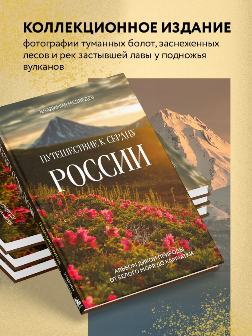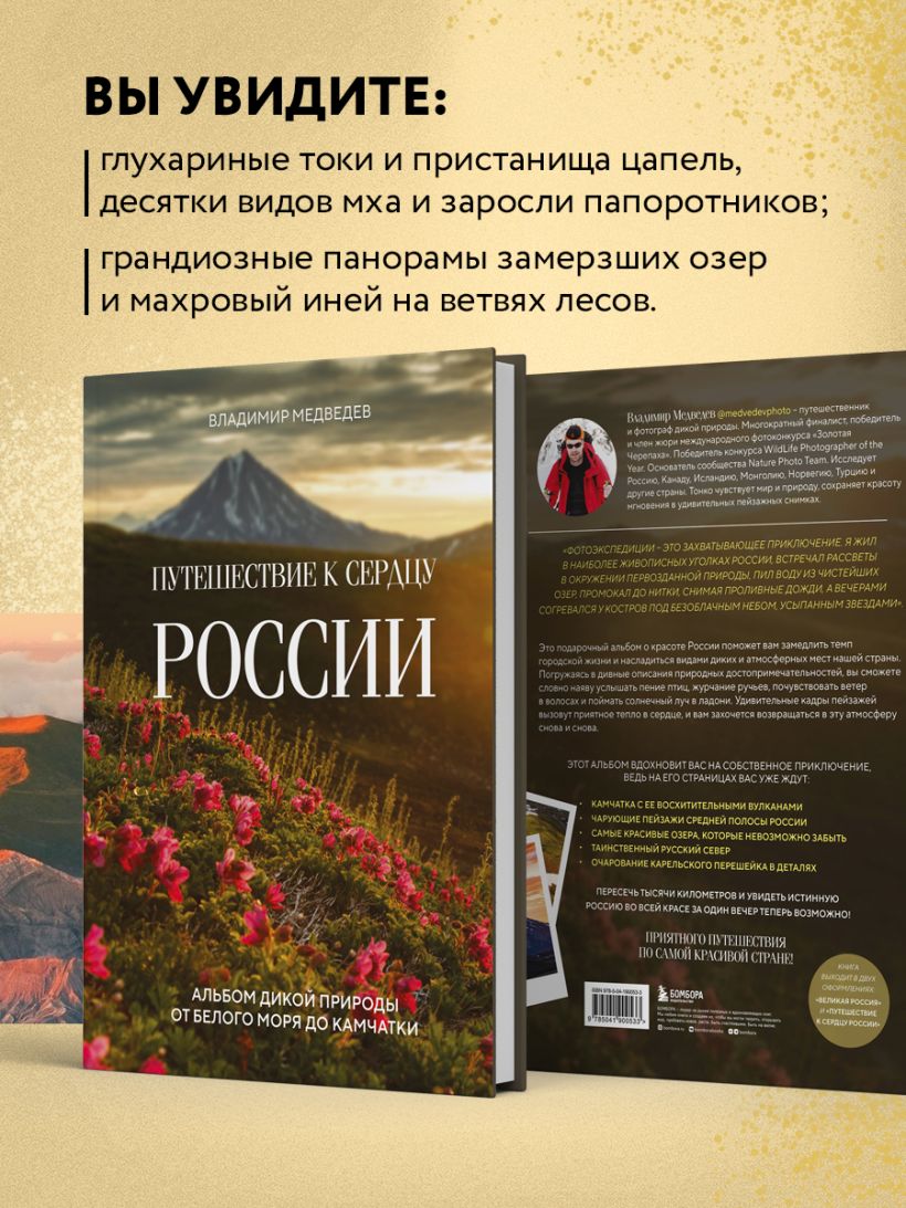 Любоваться пейзажами можно бесконечно, но еще более ценно, что вы узнаете и увидите то, что открывается лишь самым искушенным путешественникам. Вы станете больше, чем сторонним наблюдателем и читателем, вместе с впечатлениями и заметками Владимира Медведева вы полностью погрузитесь в атмосферу каждой фотографии и каждого уголка нашей страны.