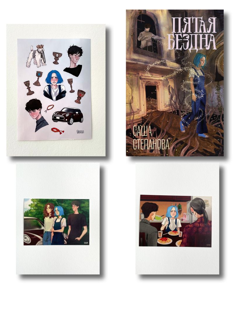 Подарочный набор по книге "Пятая бездна" Саши Степановой. Комплект включает: книга, стикерпак и две открытки по книге от художницы vikkivi. Набор из книги и эксклюзивного мерча Popcorn Books станет отличным подарком для фаната издательства.