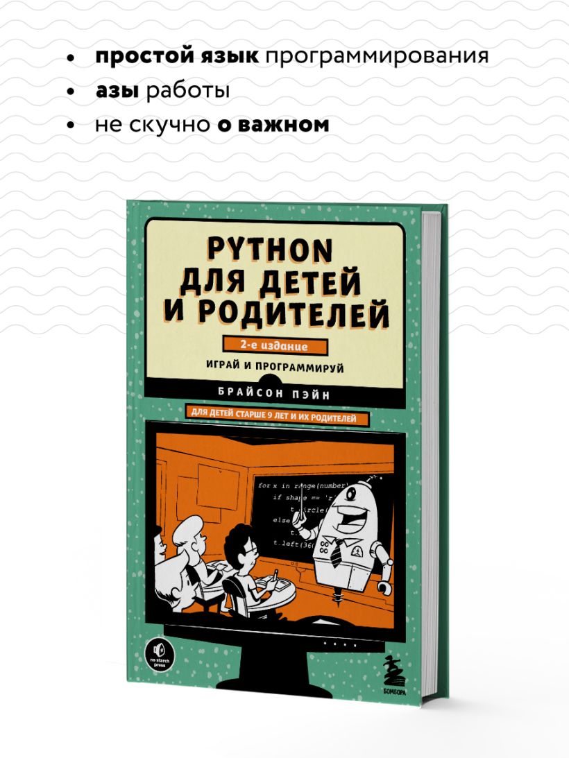 Второе издание любимого многими родителями и детьми самоучителя. Программирование — одна из самых востребованных профессий в наше время, и она останется таковой в ближайшем будущем. Научите своих детей программировать уже сейчас с помощью этой книги! В книге представлен язык Python, один из самых популярных и простых. Вы найдете здесь много упражнений — полезных, интересных и забавных, поэтому ваш ребенок не заскучает. Материал написан доступно и просто, поэтому ему не составит труда освоить азы программирования.