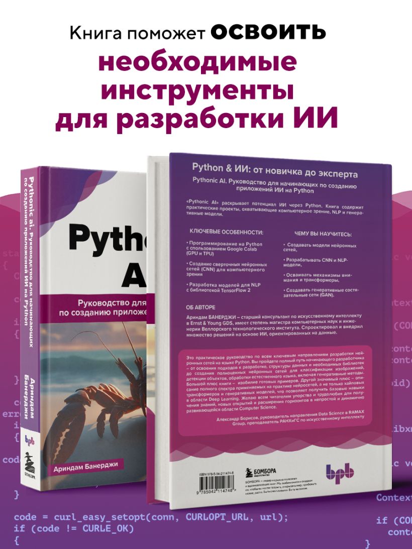 От новичка до эксперта в разработке ИИ-приложений на Python! Это идеальное руководство для погружения в мир искусственного интеллекта с применением одного из самых популярных языков программирования. Эта книга предлагает практические проекты, которые научат применять современные методы ИИ. Приложения ИИ станут реальностью быстрее, чем этого можно ожидать. Независимо от уровня подготовки, «Pythonic AI» обеспечит знаниями и инструментами, необходимыми для успешного старта и развития в сфере разработки ИИ на Python.