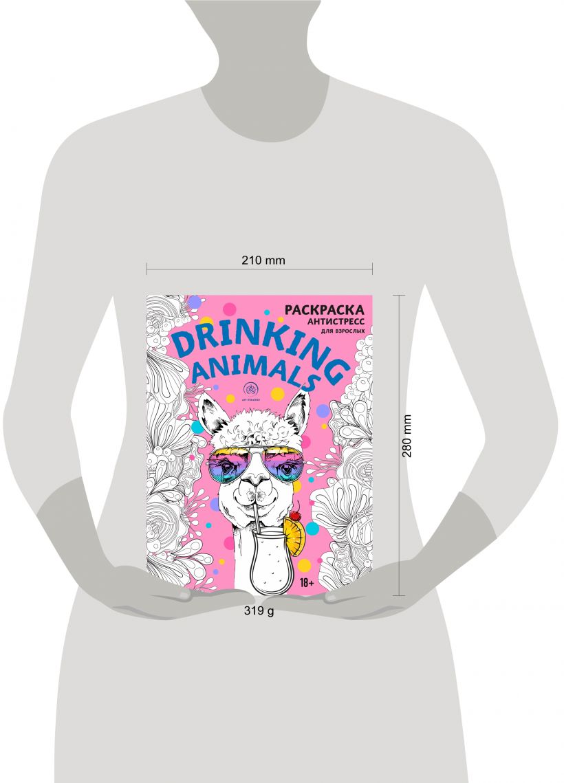 С этой книжкой ты сможешь добавить цвета зонтику в бокале пина колады, раскрасить смешных зверей с бокалами и узнать рецепт тех коктейлей, которые они держат в своих лапах!