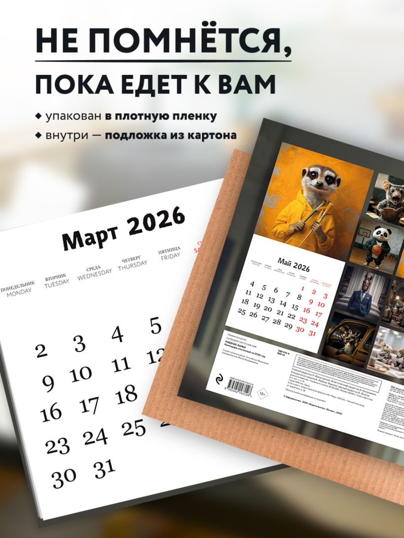 Знакомьтесь с очаровательными животными в самых неожиданных образах: панда-тренер, капибара-бухгалтер, опоссум-школьник, кенгуру-таксист, енот-айтишник, сурикат-художник, заяц-банкир и даже мышь-психолог! Этот календарь подарит улыбку каждому и поддержит позитивную атмосферу в офисе, дома или в школе. Рабочие будни с ним станут пушистыми!