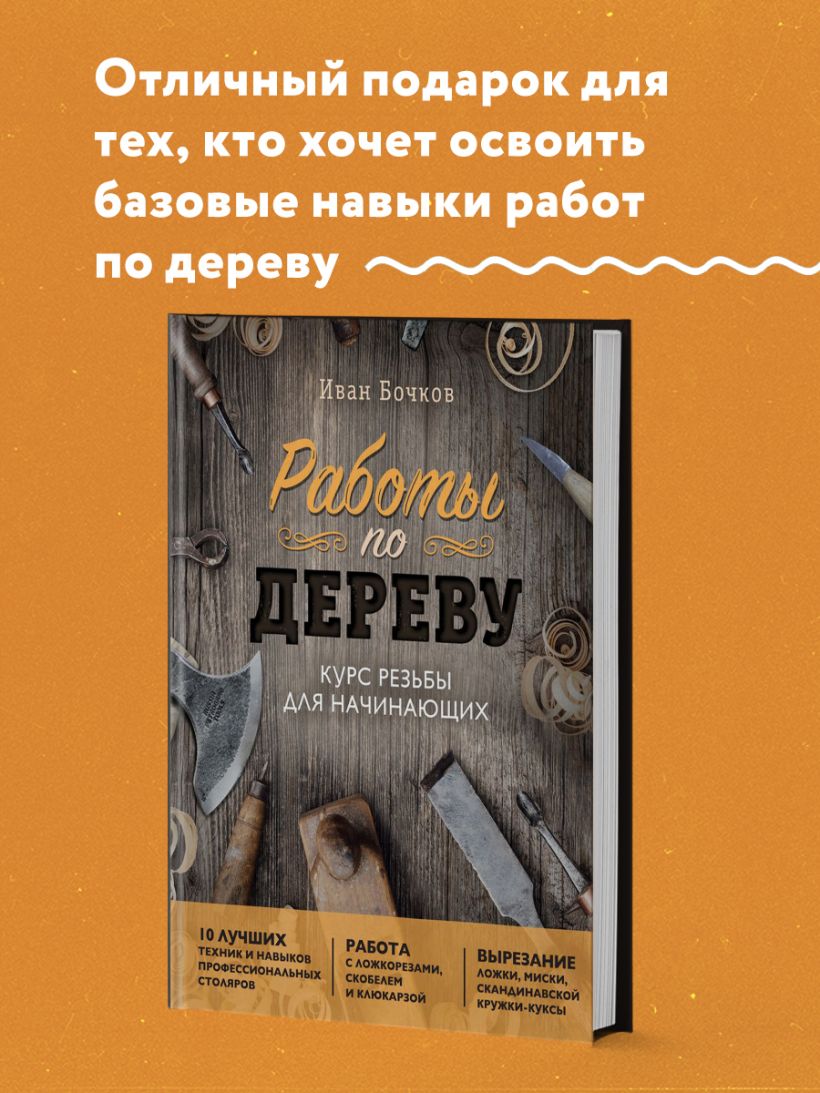 Эта книга — базовая для тех, кто хочет освоить навыки работ по дереву. Ведь именно с резьбы начинается освоение инструментов и приемов работы с разными видами дерева. Благодаря подробным и понятным мастер-классам вы сможете создать резное изделие любой сложности.