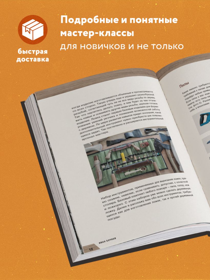 • полный разбор работы с основными инструментами — ложкорезами, скобелем, клюкарзой и другими;