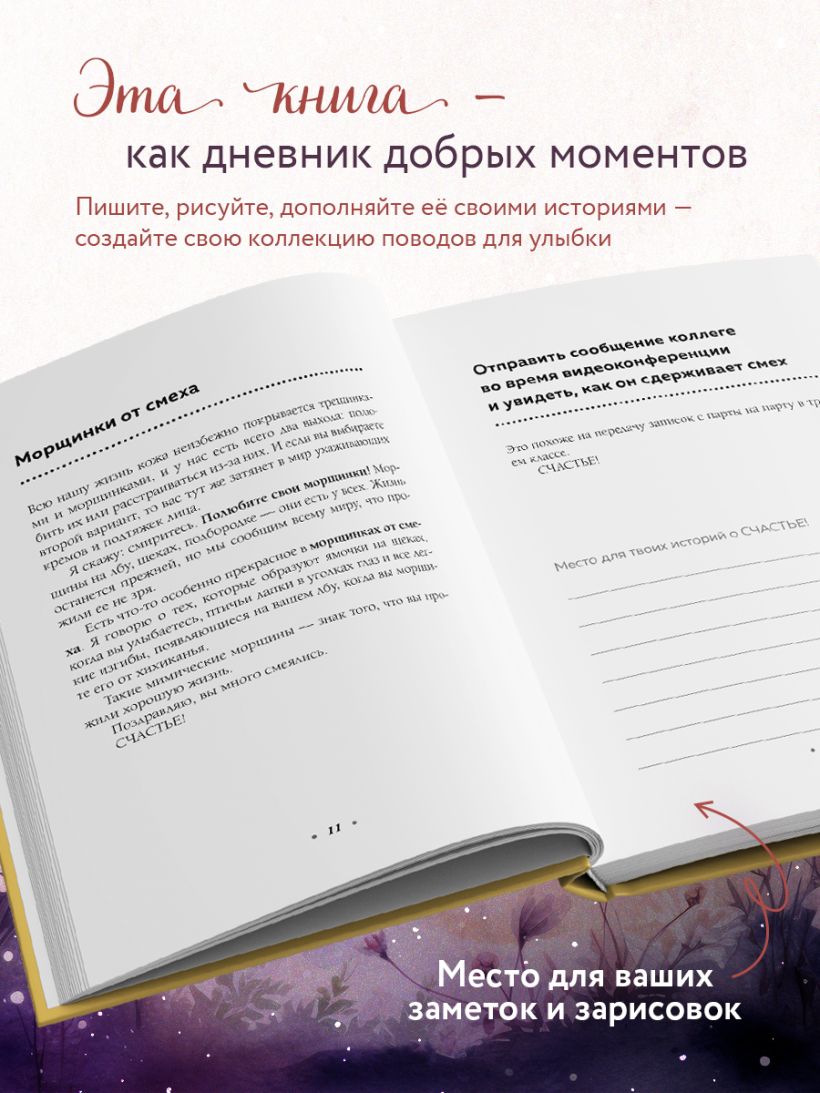 В книге вы найдете пространства для заметок. Следуя призыву автора, мы предлагаем вам стать соавторами этой книги и дополнить ее своими зарисовками о счастье. Менять фокус, видеть прекрасное в привычном, удивляться — вот оно