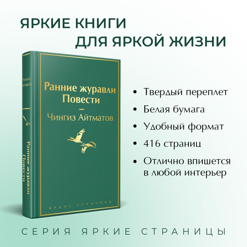 В книгу вошли его повести о любви, взрослении в трудные военные годы и налаживании жизни после войны («Джамиля», «Ранние журавли», «Первый учитель»), а также философская притча «Прощай, Гульсары!».