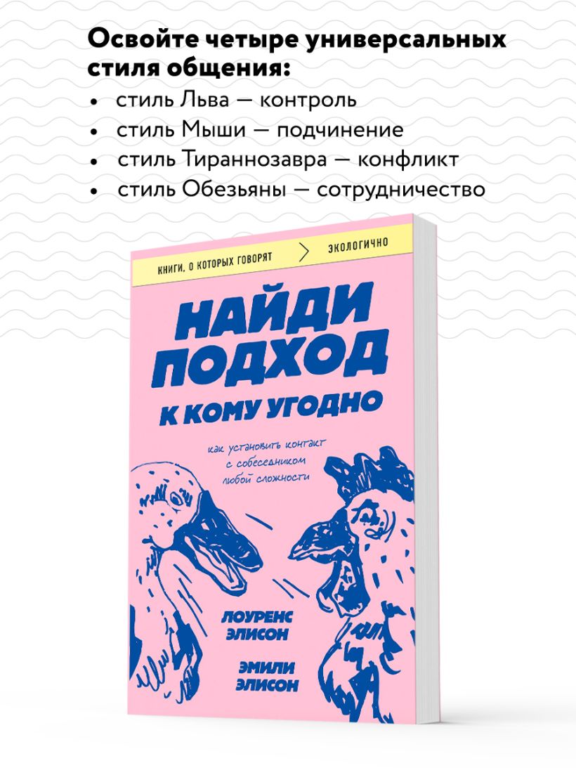 Авторы предлагают освоить четыре универсальных стиля общения: стиль Льва (контроль), стиль Мыши (подчинение), стиль Тираннозавра (конфликт) и стиль Обезьяны (сотрудничество) — используйте эти стили в соответствующих ситуациях, чтобы достигать взаимопонимания даже с самыми сложными собеседниками.