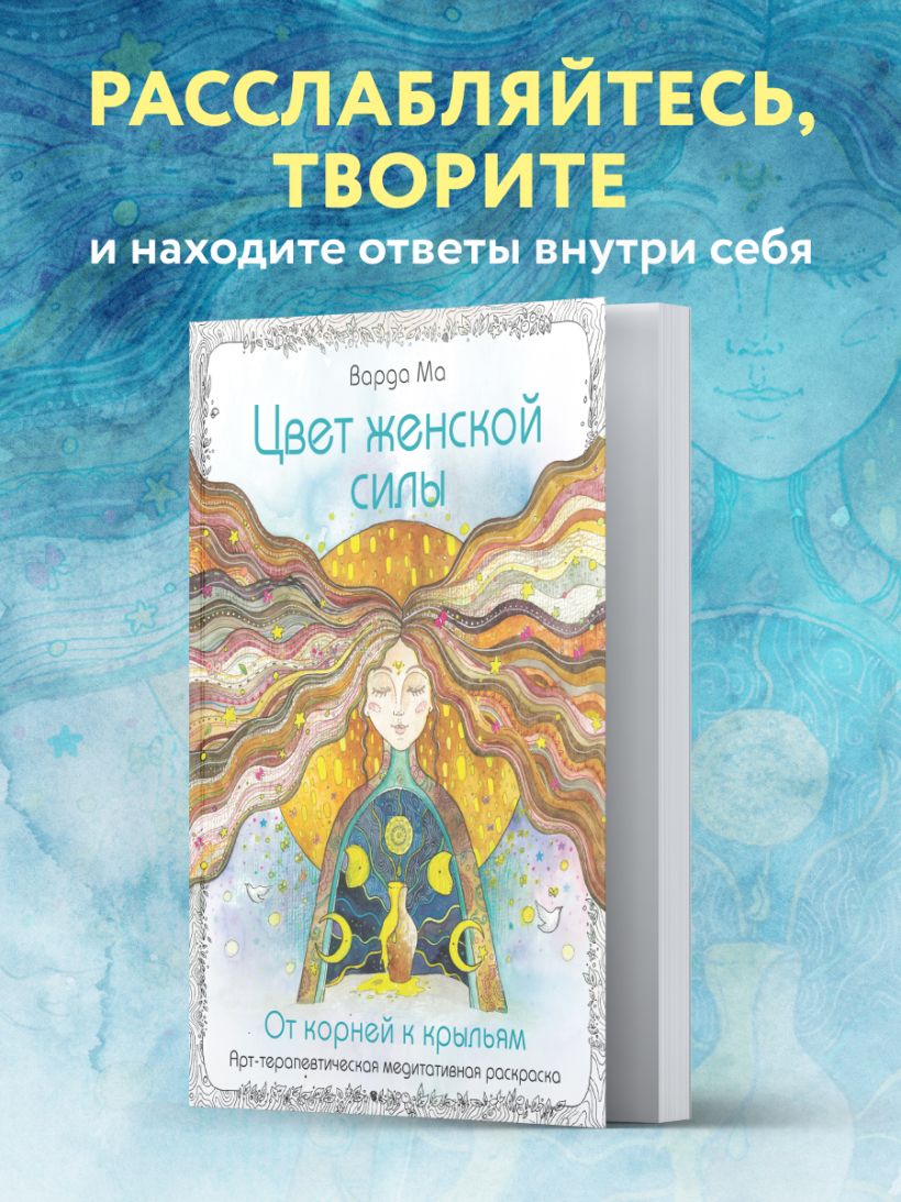 Откройте свой уникальный мир силы и чувственности с медитативной раскраской-антистресс «Цвет Женской Силы: От корней к крыльям» от талантливой художницы и арт-терапевта Варды Ма, автора популярных метафорических карт "Послания Луны"(2023) и "Древо Рода"(2024).