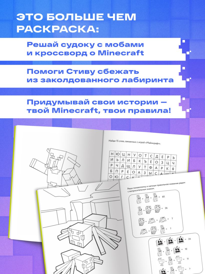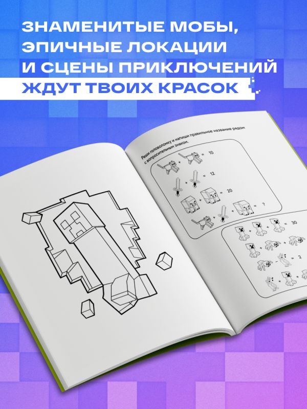 Создай свой уникальный блоковый мир и сделай «Майнкрафт» еще волшебнее. Легендарные приключения ждут тебя на каждой странице!
