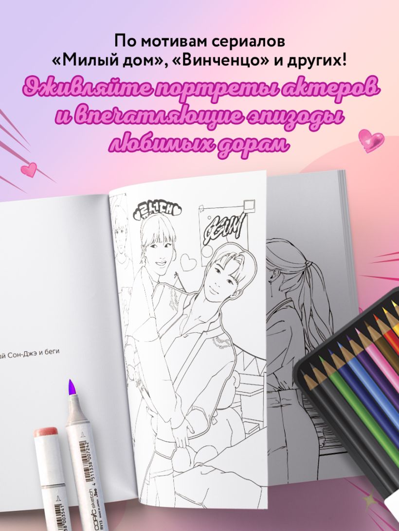 Добро пожаловать в мир корейских тайтлов, где каждый кадр наполнен эмоциями, увлекательными сюжетами и неповторимым восточным колоритом! Благодаря таланту художницы Darri вы сможете не только насладиться историей, но и добавить яркие цвета в иллюстрации, в которых отлично отражается дух популярных телесериалов.