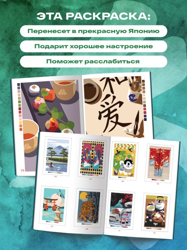 Подарите себе увлекательный творческий вечер с раскраской по номерам! Внутри этого издания вас ждут иллюстрации на разные темы: японская архитектура, замысловатые орнаменты, благородные животные и необычные наряды. Переключитесь от будничной суеты и наблюдайте, как волшебным образом на листе начинают появляться прекрасные восточные пейзажи. Плотная бумага страничек раскраски позволит применять разные художественные инструменты: цветные карандаши, фломастеры, гелевые или шариковые ручки, краски, пастельные карандаши или восковые мелки.