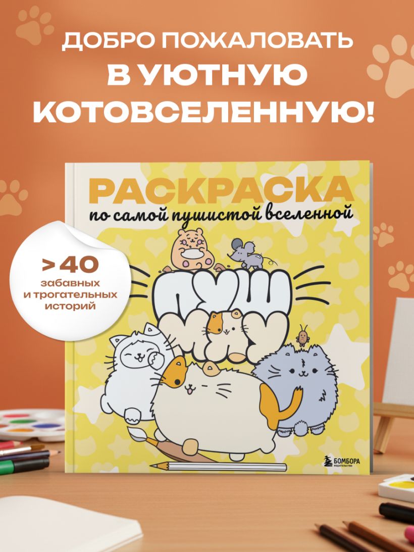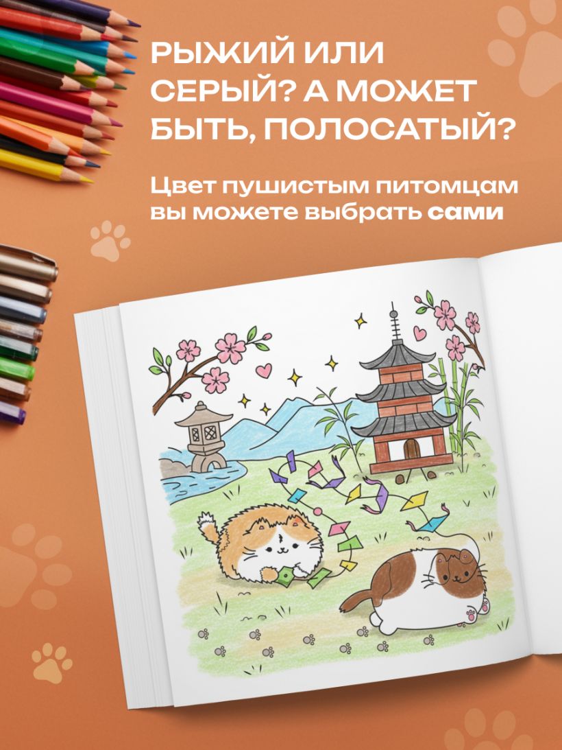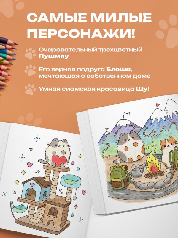 На страницах этой раскраски вас ждет более 40 теплых, забавных и трогательных историй из жизни обитателей самой пушистой вселенной на свете. Каждый рисунок хранит частичку доброты и уюта, а цвета, которые вы добавите, сделают этот усатый и хвостатый мир по-настоящему волшебным!