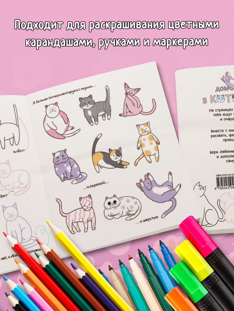 На страницах «Котоляндии» читателя ждет невероятное приключение по миру усатых и пушистых друзей. На ее страницах вас ждут иллюстрации самых разных котиков, интерактивные тематические задания, развороты для раскрашивания, а также заряд вдохновения на создание собственных мурчащих красавцев и красавиц! Все иллюстрации выполнены в авторском стиле художницы RiAlbini.