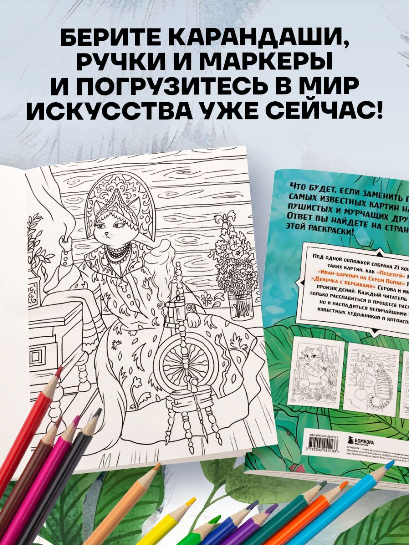 Шедевральные коты. Раскрашиваем 21 иллюстрацию по мотивам известных картин