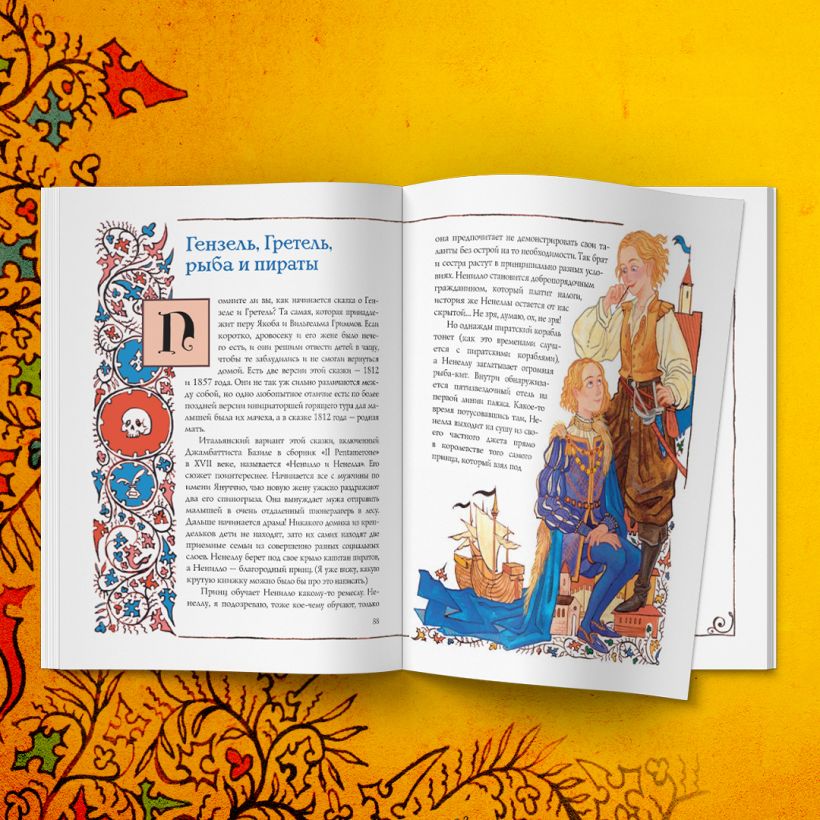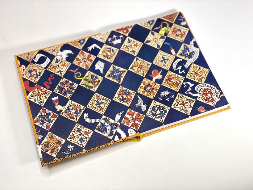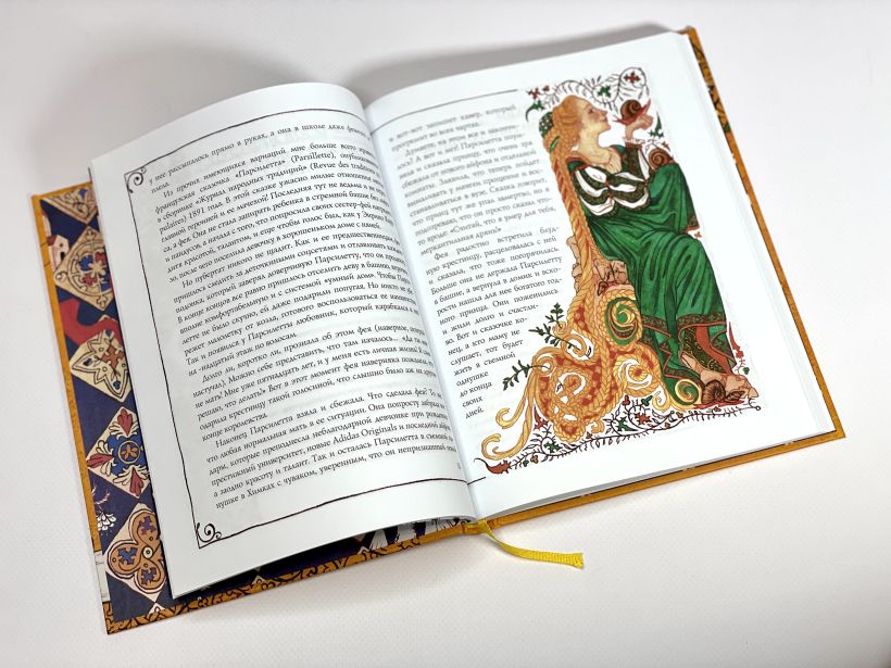 Книга полностью цветная, с яркими иллюстрациями внутри, оформлена в стиле средневековых текстов.