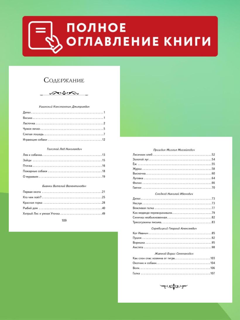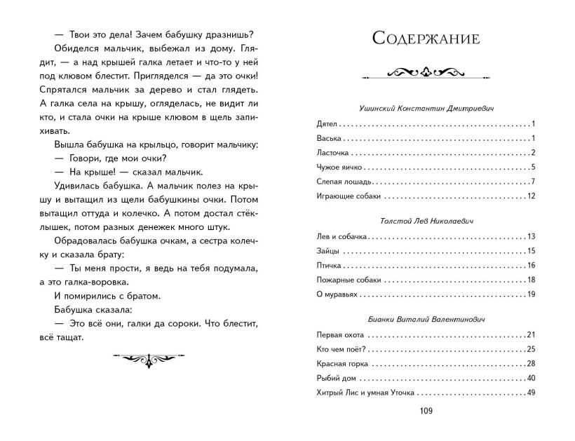 В сборник вошли основные прозаические произведения из учебной программы для начальной школы, в том числе «Пожарные собаки» Л.Н. Толстого, «Чужое яичко» К.Д. Ушинского, «Лисичкин хлеб» М.М. Пришвина, «Вежливая галка» Н.И. Сладкова и др.