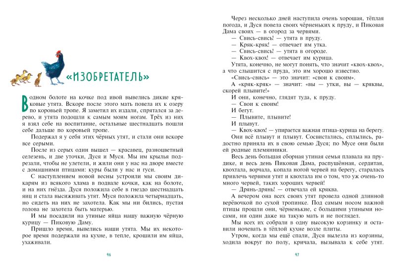 Открыв для себя эту книгу, вы сможете познакомиться с прекрасным миром природы и его обитателями. Вот пушистая белочка ищет свои летние запасы орехов, в поле баловник-щенок гоняется за птенцами, а сообразительный утёнок с помощью своего «изобретения» выбирается из корзины.