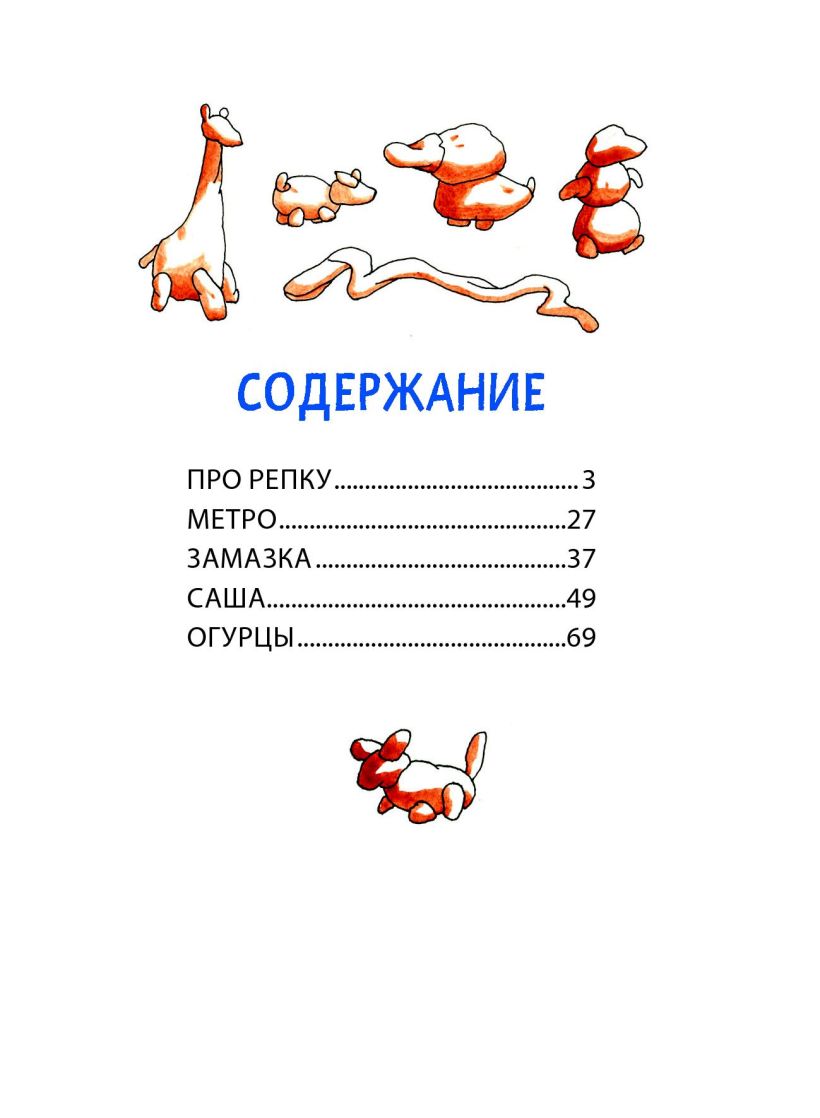 В книгу входят пять рассказов Николая Носова, написанных в разные годы ("Про репку", "Метро", "Замазка", "Саша", "Огурцы"). Иллюстрации выдающегося книжного графика Генриха Валька.