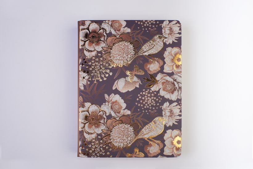 Райский сад с птицами. Тетрадь на кольцах, А5, 100 л., с цветными разделителями, зол. фольга