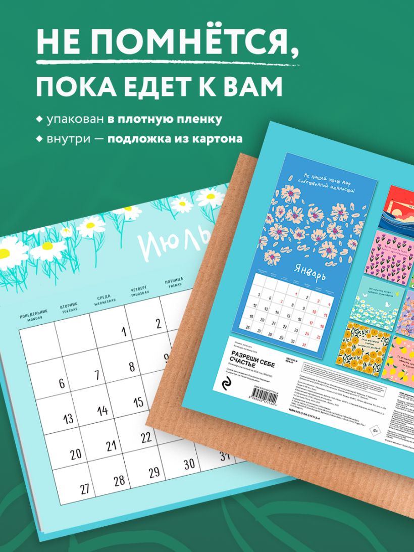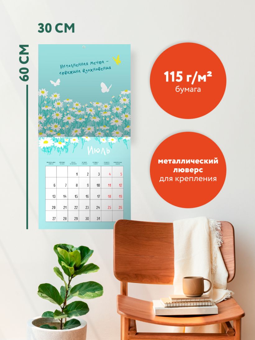 Календарь Татьяны Мужицкой с яркими иллюстрациями от Влады Коваль! В сетке — вдохновляющие цитаты автора и необычные праздники вроде «Всемирного дня “Спасибо”» и «Международного дня заботы о себе». Каждый месяц — как напоминание: жить можно с радостью, легкостью и любовью к себе. Совокупный тираж книг Татьяны Мужицкой — 360 000 экземпляров. Наши настенные календари отличаются высоким качеством исполнения! Тщательно подобранные иллюстрации, напечатанные на глянцевой бумаге высочайшего качества, станут настоящим украшением дома, а в календарной сетке найдется место для ваших планов: большие клетки позволят делать записи и организовать свой год! В серии настенных календарей издательства «ЭКСМО» каждый найдет тему по вкусу: великие художники, великолепные подборки с самыми знаменитыми произведениями искусства, легендарные кинематографические саги и игры, главные книжные авторы и бестселлеры, фотографии и иллюстрации любимых животных и многое-многое другое! Технические параметры: - Тип календаря — настенный перекидной. - Год — 2026. - Календарная сетка — с разбивкой по месяцам. - Вид скрепления — скрепка. - Ширина — 30 см. - Высота — 30 см. - Внутренний блок — мелованная бумага 150 г/м2. - Подложка — плотный гофрокартон для поддержания формы. - Индивидуальная упаковка в плотный целлофановый пакет.